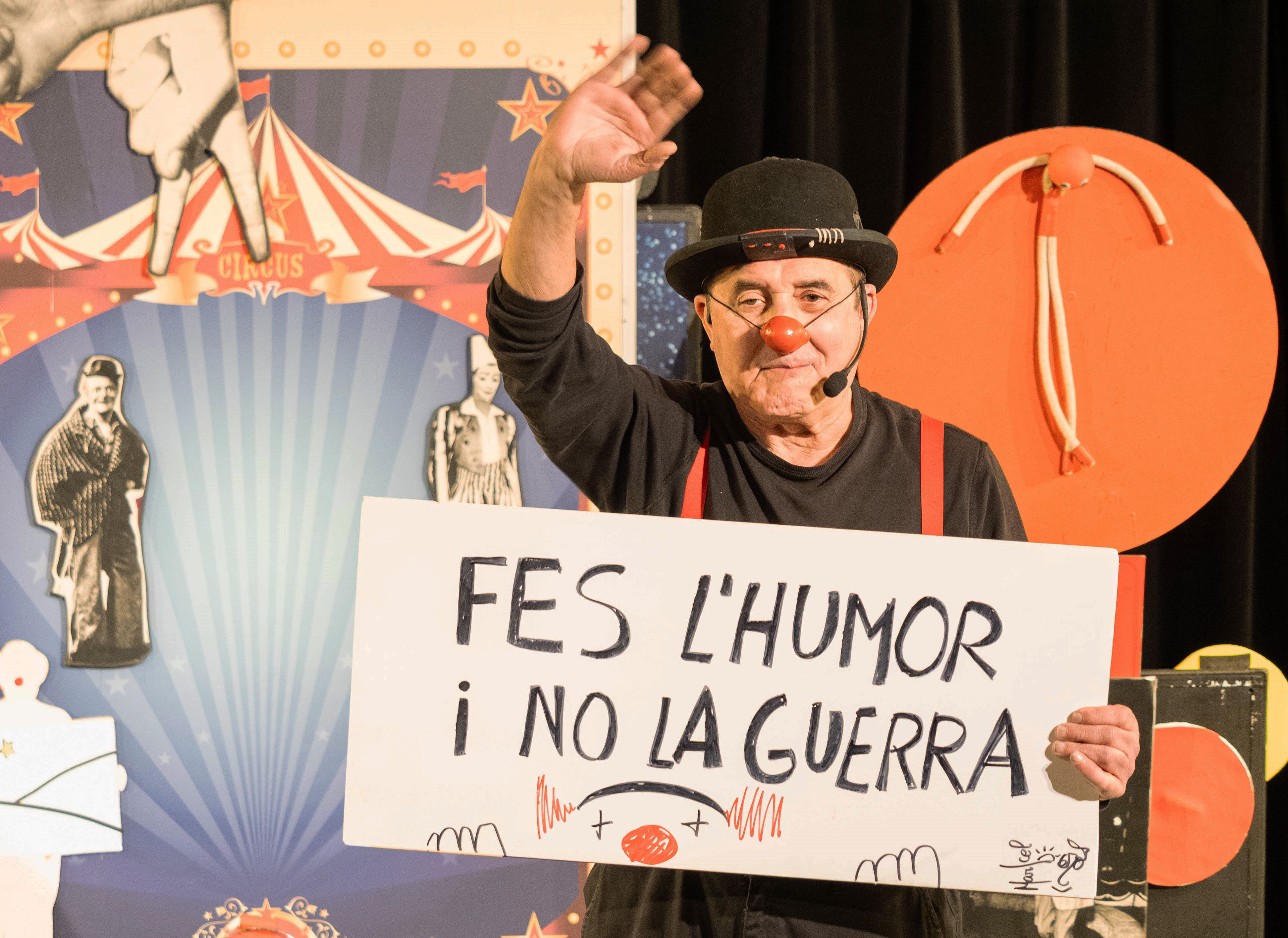 En Marcel vestit amb les seves sabates grosses, el nas de pallasso i el barret inconfusibles, ens va explicant amb un llenguatge poètic els temes escollits i el seu pensament, el seu univers sovint tranquil, sovint enginyós, amb silencis que parlen, amb els seus somriures, desgrana un espectacle per a tots els públics. L’entenem cadascú al nostre nivell, segons els nostres referents, mil i una idees si has seguit el seu consell de deixar volar la imaginació, però també de reflexió, fins al final de l’espectacle amb el cartell de “Fes l’Humor i no la guerra”.
